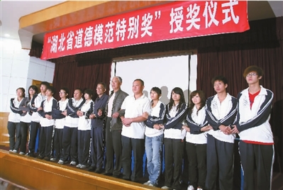 按照省委书记罗清泉、省长李鸿忠的指示,2009年10月29日上午,省文明委在长江大学举行了隆重授奖仪式,向10月24日在荆州长江抢救落水少年的英雄群体,授予“湖北省道德模范特别奖”。省文明办负责人宣读了表彰决定。省委宣传部负责人受省委副书记、省文明委主任杨松同志和省委常委、省委宣传部部长、省文明委副主任李春明同志的委托,高度赞扬英雄群体的壮举,称赞他们用实际行动诠释了当代青年的价值追求和崇高使命,诠释了中华民族见义勇为的传统美德,是开展公民道德建设,建设社会主义核心价值体系的生动教材,要求各级文明委和成员单位开展形式多样的学习宣传活动,并对见义勇为者及其亲属给予政治上、生活上的关心,把党和政府的温暖送到他们心中。