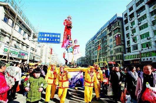 作为襄阳市级非遗项目,老河口“抬妆故事”一般由小孩扮成神话中的人物,分两层站在大方桌上表演各种动作,伴随着锣鼓队由大人抬着边走边表演。