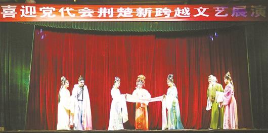 各地纷纷举办专场主题性文艺演出,孝感市举办“喜迎十九大永远跟党走”文艺汇演,十堰市郧阳区组织开展“喜迎党代会”专场送戏下乡演出,随州市曾都区举办以“廉洁从政”为主旨的党风廉政建设文艺汇演,营造喜迎省党代会的良好政治氛围。各专业剧团结合戏曲进校园活动,精心选取《红灯记》《智取威虎山》《沙家浜》等革命题材剧目选段,送进大中小学校园,弘扬优秀传统文化,唱响红色经典。